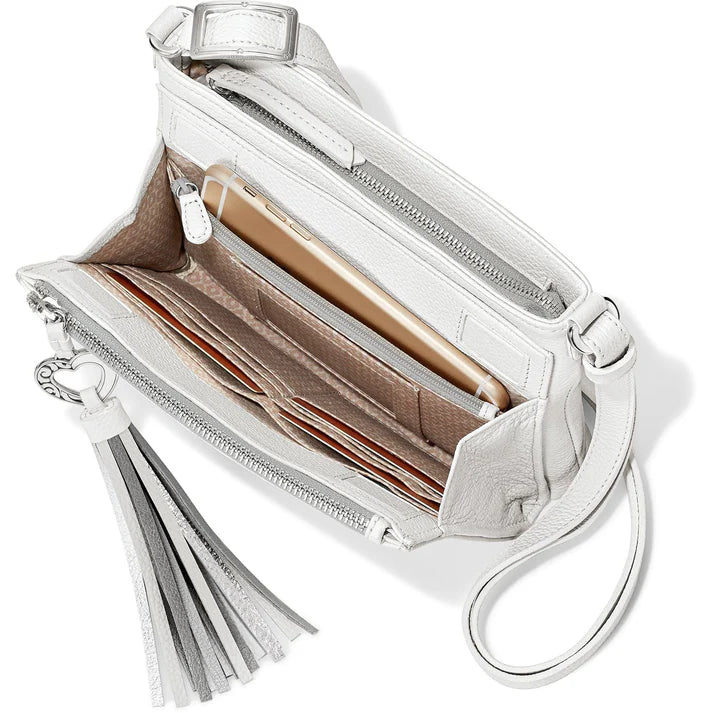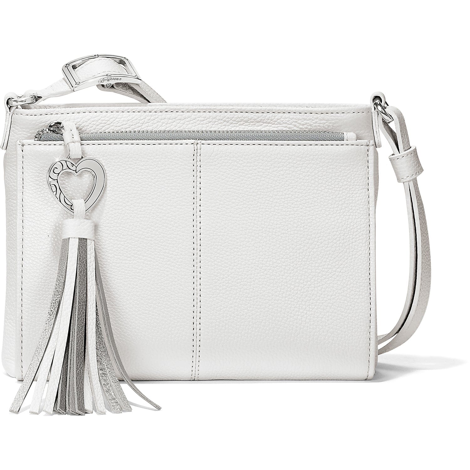 Everything in its place is this organizer's motto, with a many-pocketed built-in wallet. A smooth ziptop close, along with a large zippered pocket on front, add security, while a swingy heart-adorned tassel adds style.