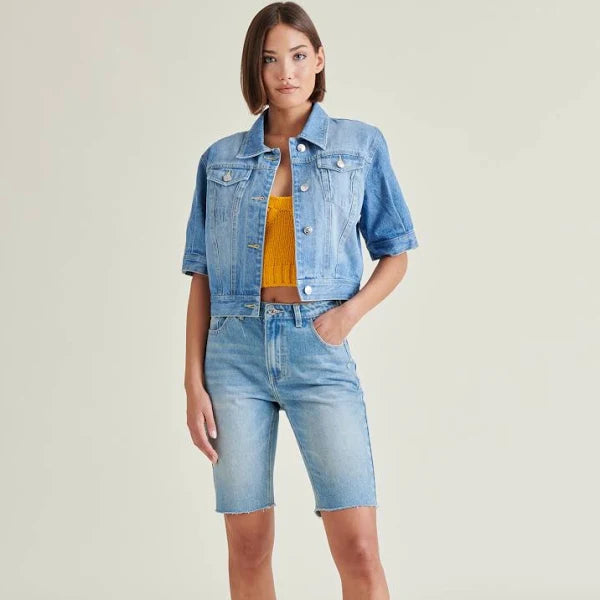 Say hello to your new go-to layer: the Blu Jacket by Steve Madden. This cropped denim jacket features short sleeves, silver hardware, and a classic button-front design—perfect for throwing over your favorite dresses, tanks, or tees. The relaxed fit and light vintage wash make it a spring staple with endless styling potential.