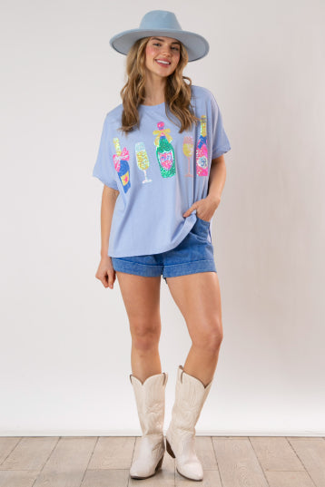 Champagne Bottle & Glass Sequins Loose Fit Top