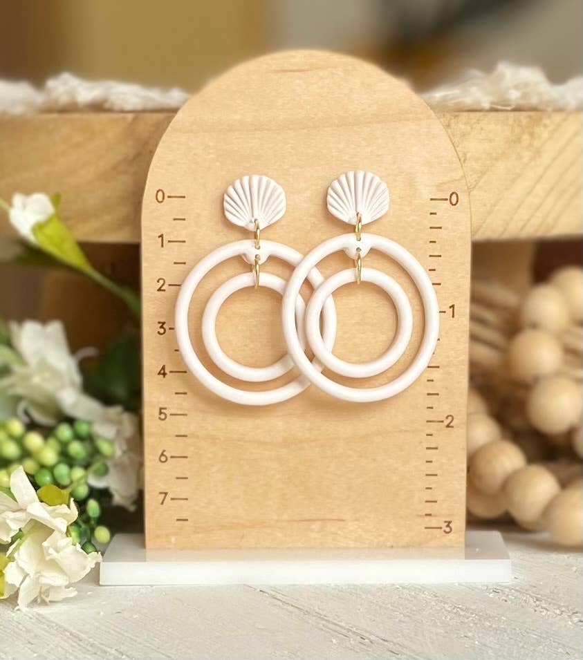 Each piece is one of a kind handmade by me. I design each piece from start to finish in my studio in TX. I cut the piece from our very own custom blended colors and bake. All of our jewelry is hand sanded with a series of fine grit sandpaper and buffed to a smooth finish. A lot of love and care goes into each and every pair!