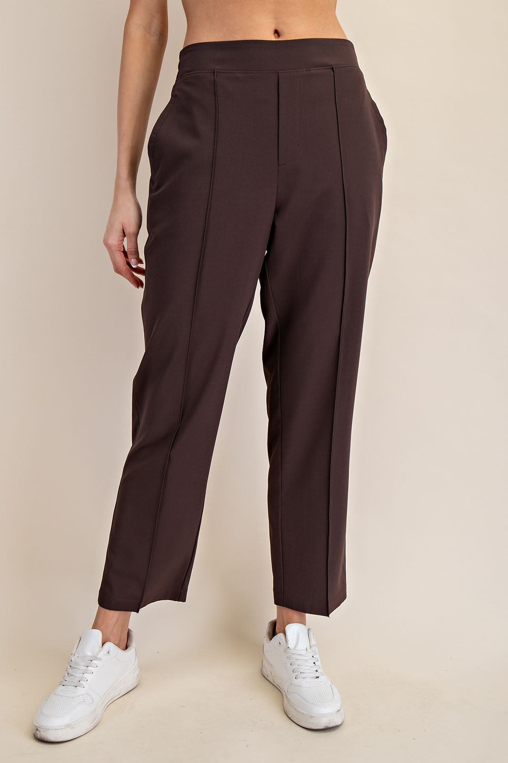 Step into comfort and style with our Crinkle Woven Ankle Trouser in rich espresso. These breezy trousers feature a playful crinkle texture that adds a fun twist to your everyday look. The ankle-length cut keeps things light and flirty, perfect for dancing through your day with ease and flair. Whether paired with sneakers or heels, these trousers bring a cozy yet chic vibe to any outfit.