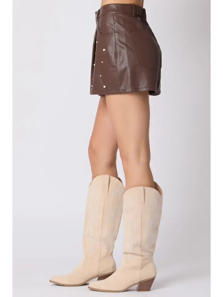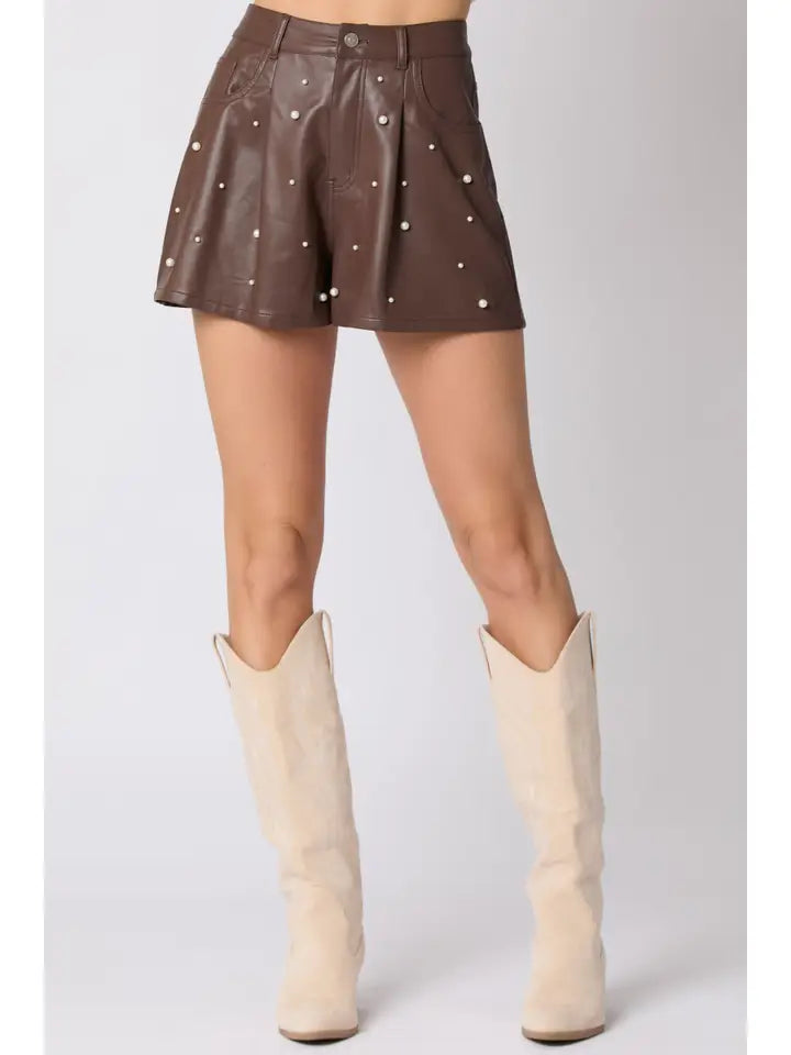These leather shorts feature unique pin tuck details for a playful twist on a classic design. Perfect for adding a touch of edge to any outfit, these shorts are sure to turn heads and make a statement. Embrace your playful side with these Leather Pin Tuck Detail Shorts!