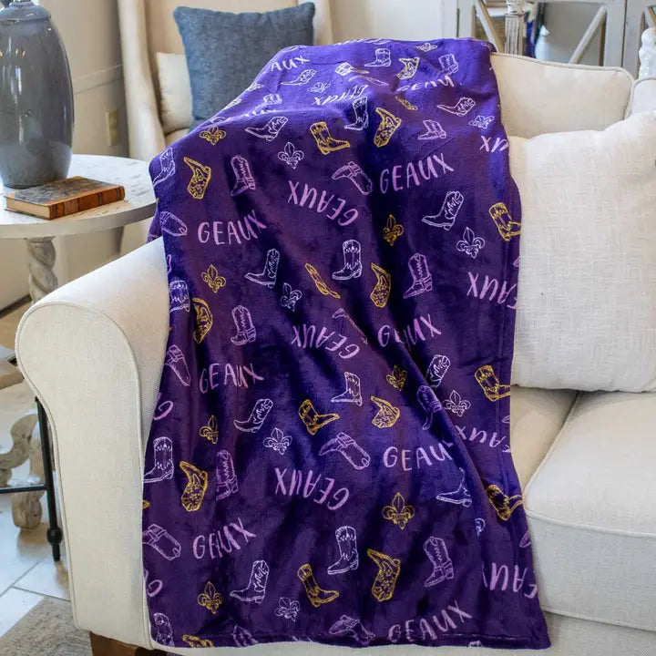Get ready, get set, celebrate! Cheer on your team with our lively Gameday Collection throw. Featuring vibrant purple, yellow, and white colors, this 50x60 blanket is perfect for showing off your football pride in style.
