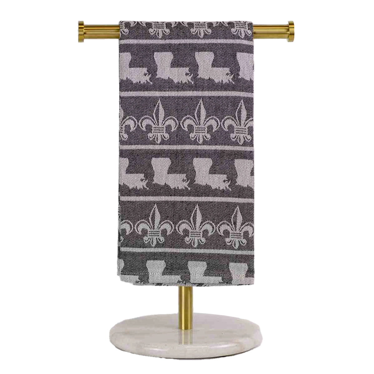 Add a touch of Southern charm to your bathroom with the Louisiana Fleur Jacquard Hand Towel. Measuring 20x28 inches, this black towel features an elegant fleur pattern woven right in, combining style and softness for everyday use. Perfect for drying hands or adding a chic accent, it’s a playful way to brighten your space with a hint of classic flair.