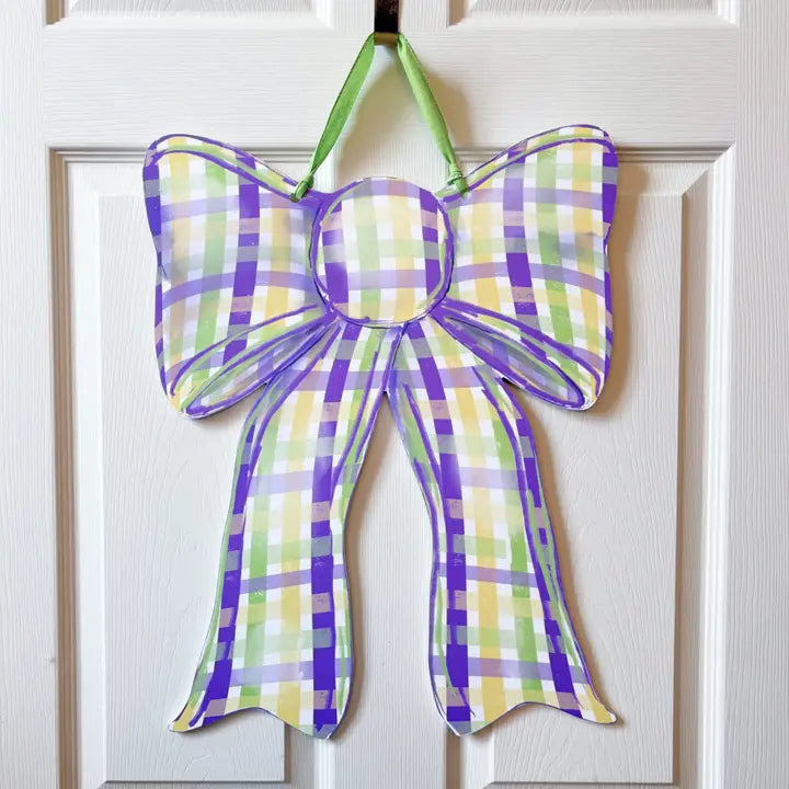 Mardi Gras Plaid Bow Door Hanger Carnival Nola Outdoor Decor