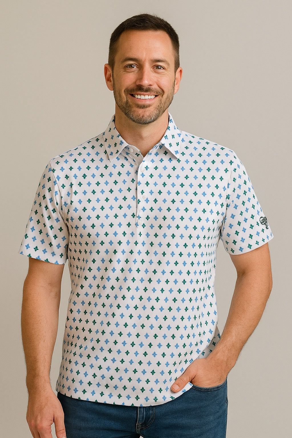 Men's Blue & Green Fluer-De-LIs Polo Shirt