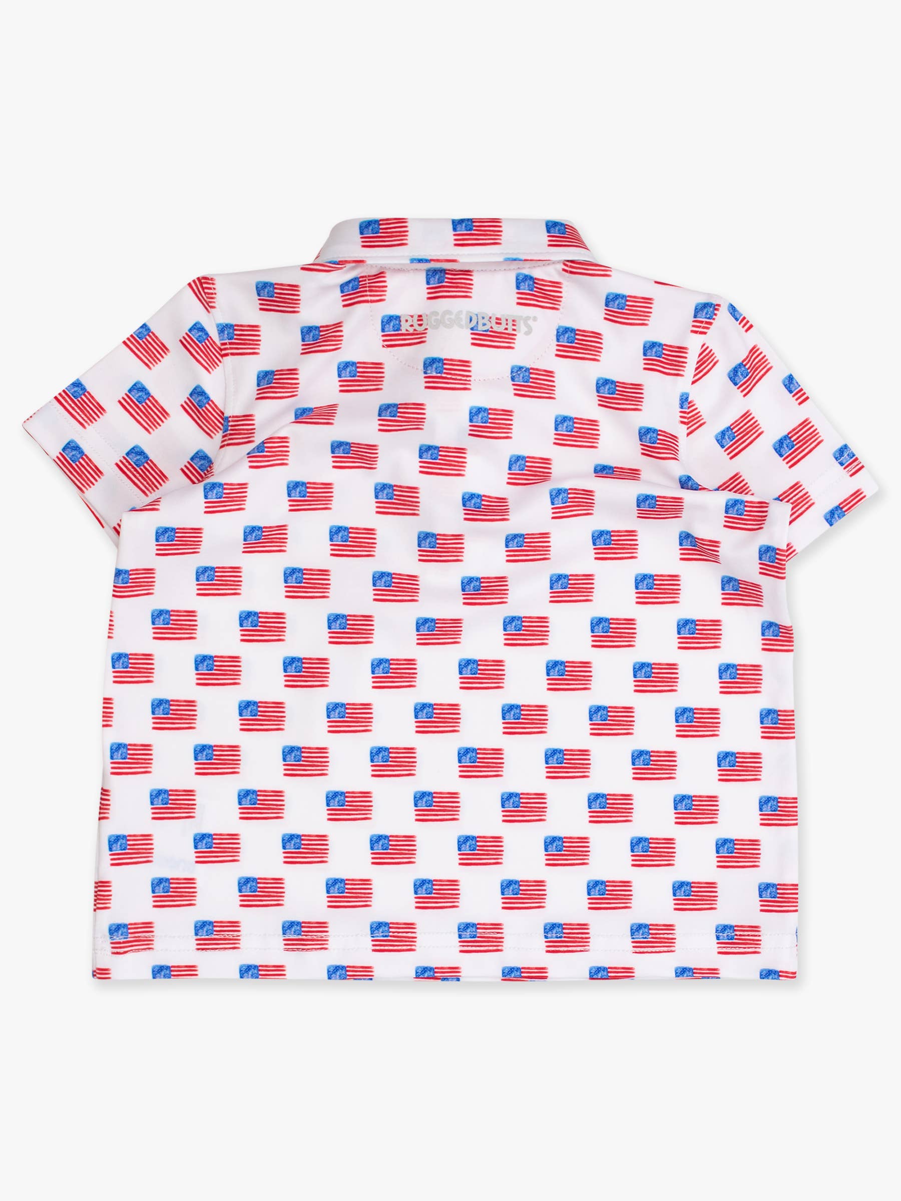 Waving with American pride, this playful pattern features hand-drawn flags lined up in neat rows across a crisp white backdrop. With artistic stars and stripes in classic red, white, and blue, it’s a fun and festive way to show your patriotic spirit - perfect for holidays, parades, and little firecrackers who love to celebrate in style! Perfect for Fourth of July, Memorial Day, and all your star-spangled celebrations. Pairs well with Red, Sonic Blue, White, Vintage Red.