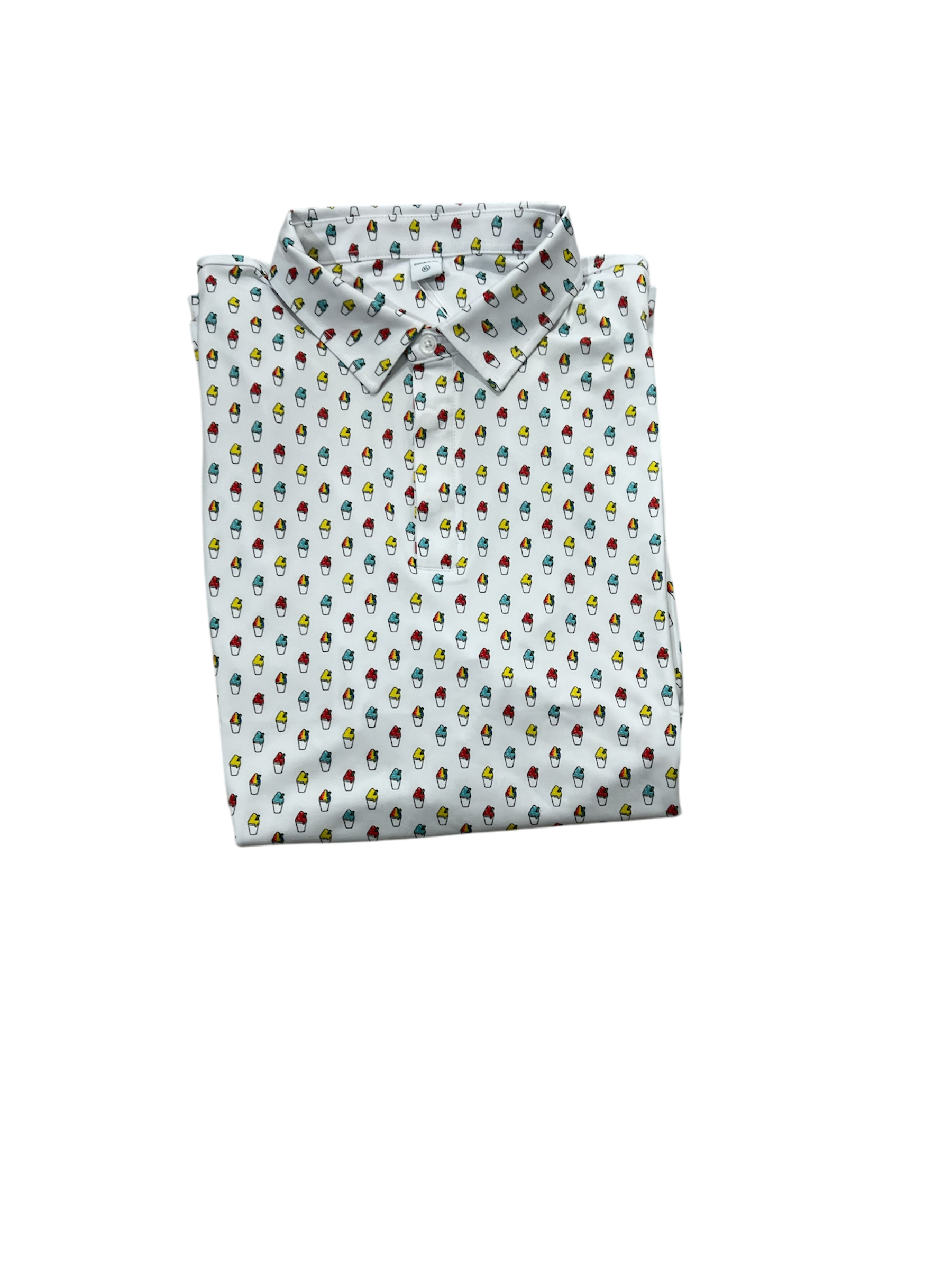 Stay cool and casual with our Men's Snowball Polo Shirts. Perfect for any outdoor activity, these shirts keep you looking stylish while also providing comfort and breathability. With a playful twist on the classic polo shirt, you'll be ready to roll with the punches (or snowballs) in these quirky and fun shirts. (No snowballs included!)