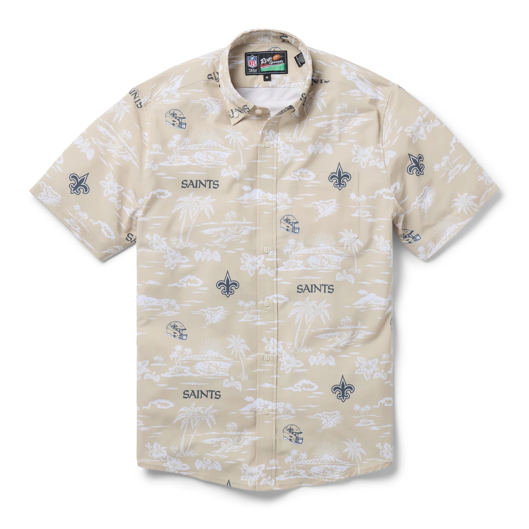 Get ready for some Aloha in the end zone in our New Orleans Saints Performance Button Front. Featuring ultra-soft performance fabric for ultimate comfort, quick-dry technology, and moisture-wicking to keep you cool and looking fresh from kickoff to the two-minute warning.