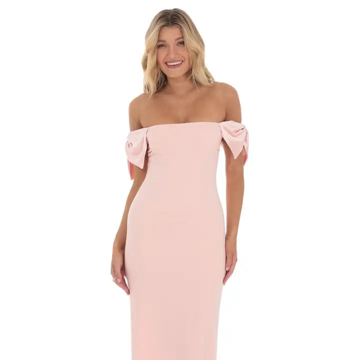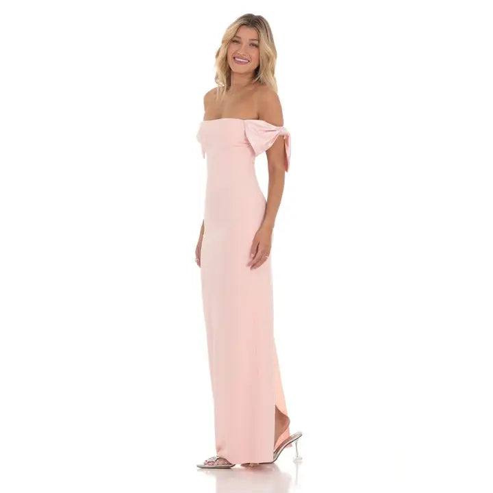 Off Shoulder Bow Sleeve Maxi Dress in Pink