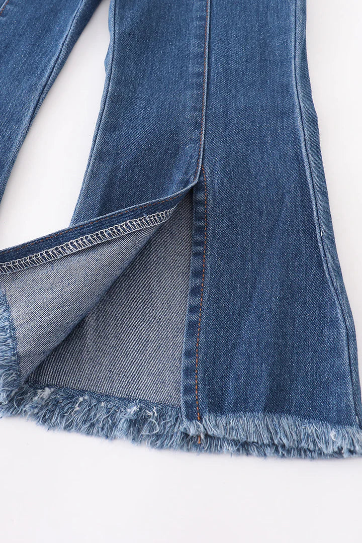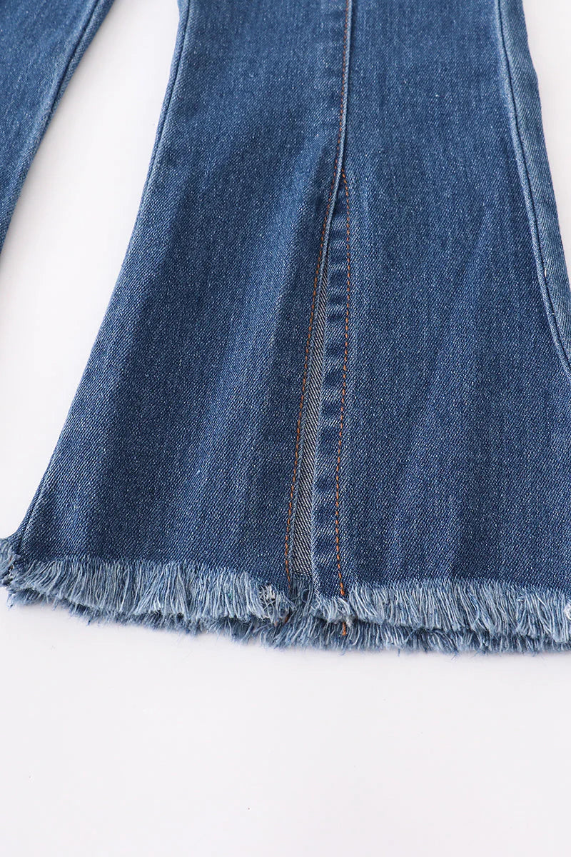 Introducing our Navy open front girls denim jeans! These jeans are perfect for showing off some serious style without sacrificing comfort. With a classic open front, these denim pants are sure to become your girl's new favorite accessory. Add an extra touch of pizzazz to her look today!