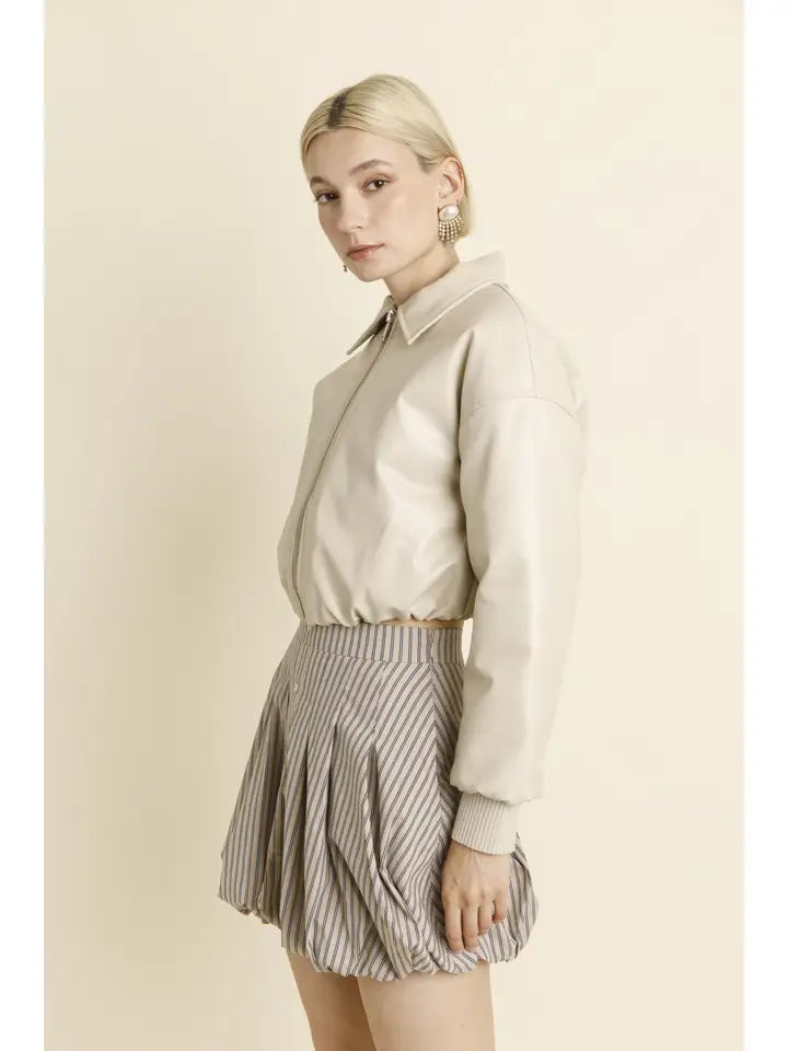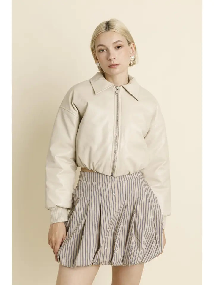 Fabrication: Non-stretch vegan leather -Padded design with full lining -Slightly oversized fit with cropped length -Front zipper closure