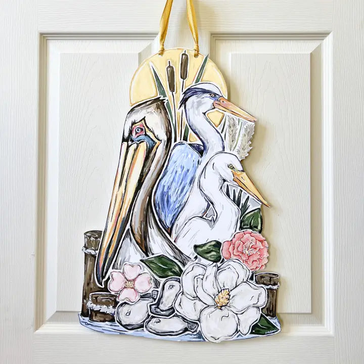 Southern Marshland Door Hanger - Bayou Wetlands Bird Decor